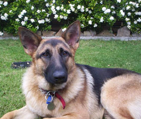 My name is Julie Tripp, I live in Brisbane , Australia. I came across your website by accident and thought I would enter my beautiful boy "TYSON" in your GSD of the month.