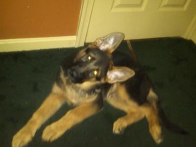 This is Axel. Axel is a four and half month old german shepherd. He is great, he weighs about fifty pounds right now.