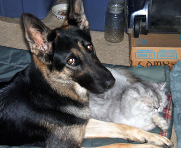 she tells me that some gsd's r not as fortunate as i am and they need love too to lift their spirits. mom give me plenty of love so i dont mind, gives me an excuse to stretch out on my bed.