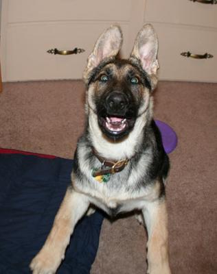 I just happened to snap this photo of my 16 week shepherd at the right time.