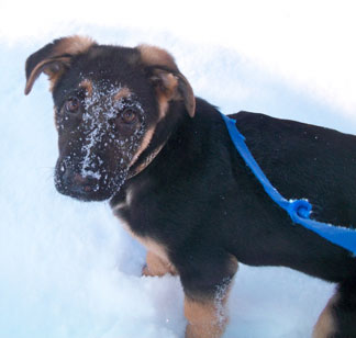 In this picture he had just stuck his whole head in the snow looking for an ice cycle I had thrown for him. He's such a sweet pup, and I hope you think he's cute too!