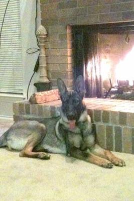 She is an 11 month old sable GSD, whom me and my husband just love and adore. I personally am in love with this picture because how happy and carefree she looks. But for just being 11 months old this little girl has had a rough first year of her life.